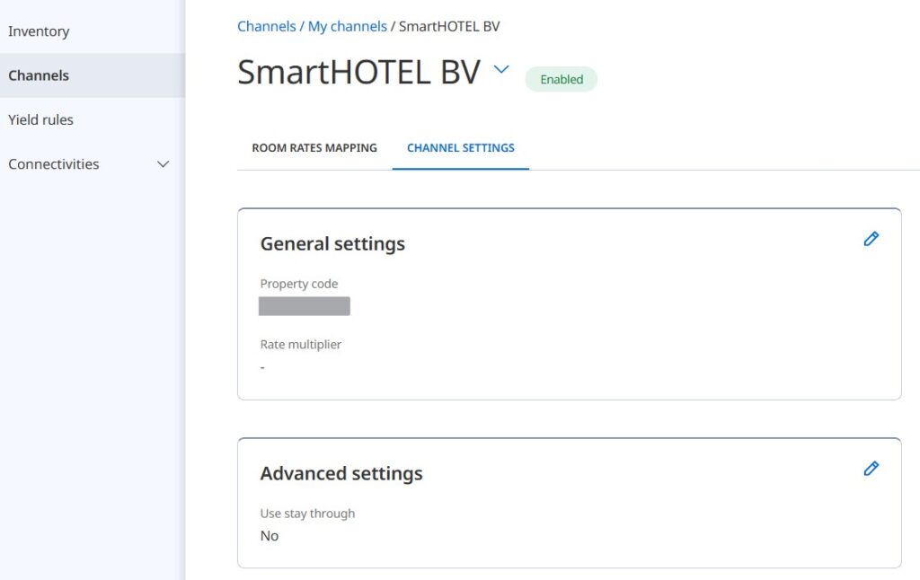- In the general settings of your ‘’channel settings’’ in Siteminder, you need to enter the same property code under property code. This is used to maintain the XML connection